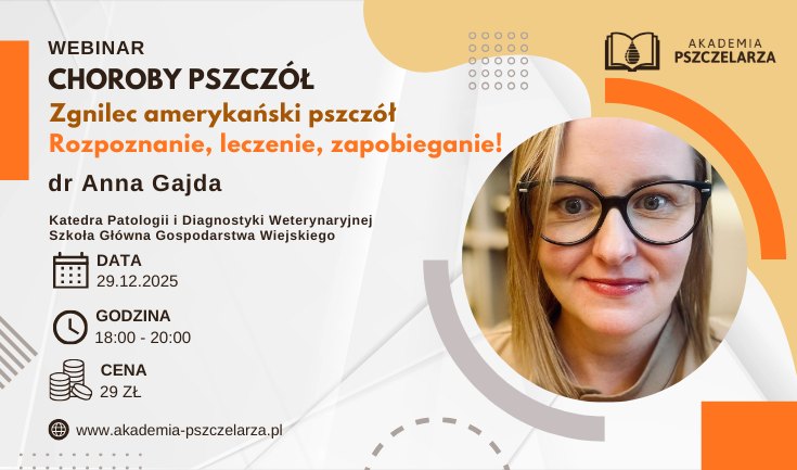 Akademia pszczelarza zaprasza na webinar poświęcony zgnilcowi amerykańskiemu. Koszt 29,- złotych link do zapisu poniżej